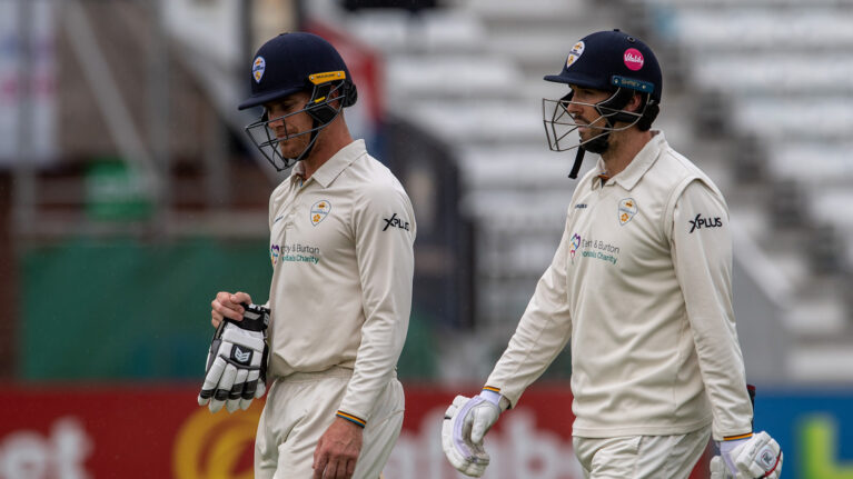 When Derbyshire reached a third batting point, they had scored 300 in the first innings of every championship match at Derby this season for the first time in the club’s history.