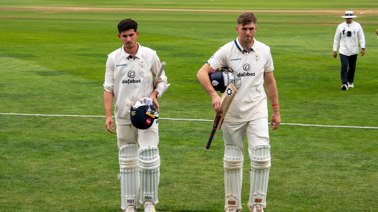 On a pitch that was lively throughout, making life difficult for batters against both the quicker bowlers and spinners, Derbyshire lost their last eight wickets for 45 runs, veteran Wayne Madsen top-scoring with a modest 32 and concussion stand-in Mitch Wagstaff making 27.