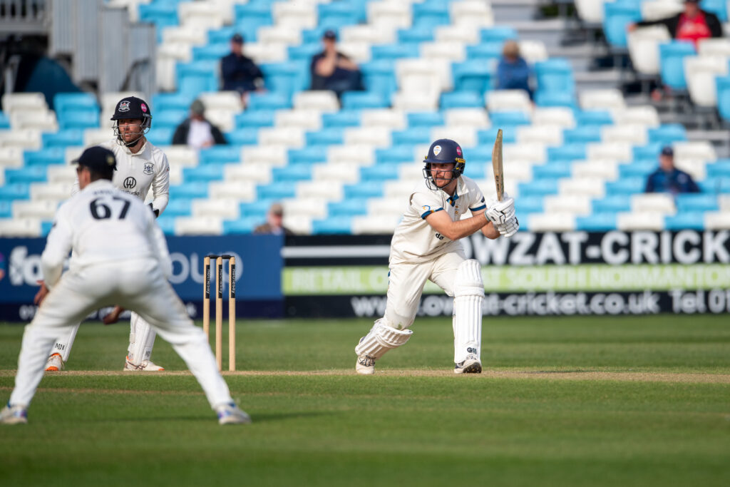 When they followed on trailing by 217, Harry Came and Caleb Jewell both went cheaply before Madsen fell for a second time to increase the pressure on Derbyshire.